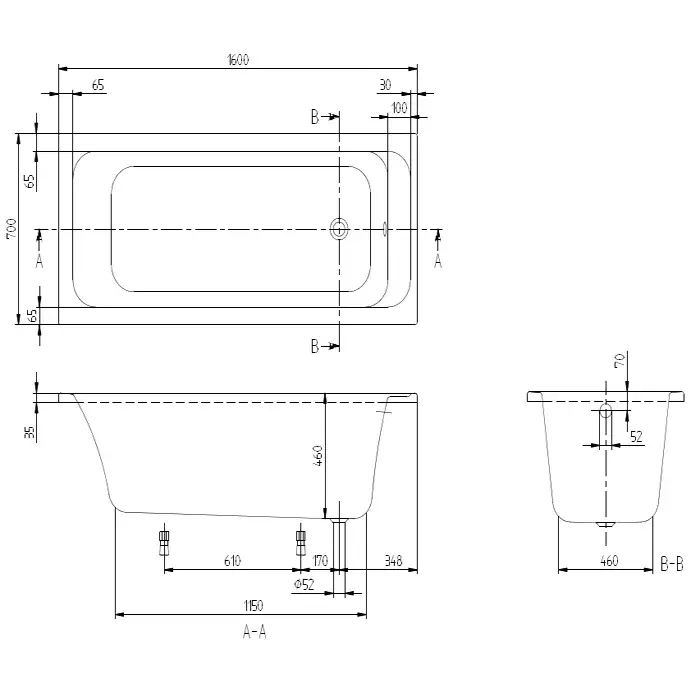 Villeroy & Boch Architectura Ванна 160х70х48,5 см, встраиваемая, цвет: альп. белый UBA167ARA2V01
