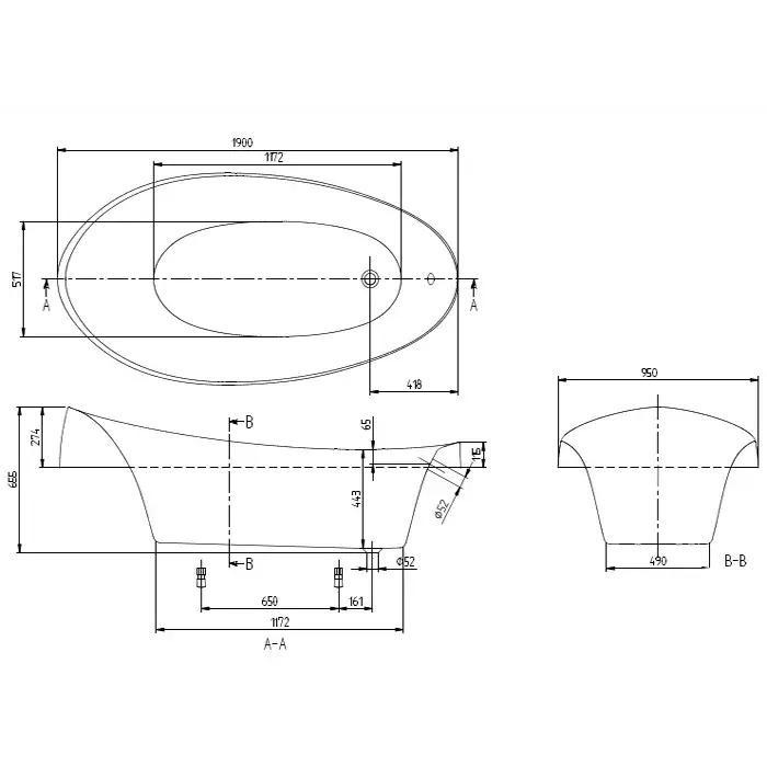 Villeroy & Boch Aveo Ванна овальная отдельностоящая 190х95х44 см, цвет: белый UBQ194AVE9PDV01