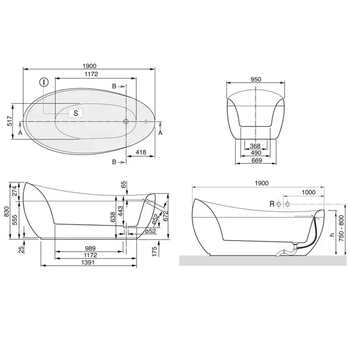 Villeroy & Boch Aveo Ванна овальная отдельностоящая 190х95х44 см, цвет: белый UBQ194AVE9PDV01