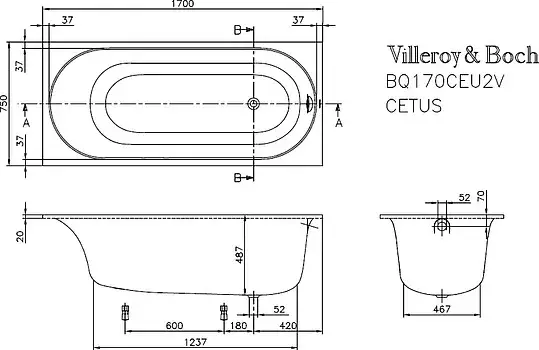 Villeroy & Boch Cetus Ванна из Quaril 170х75 см, цвет Alpin UBQ170CEU2V-01