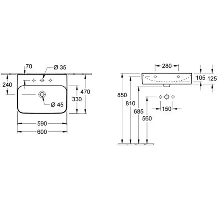 Villeroy & Boch Finion Раковина накладн. прям., 1 отв. под смеситель, 60x47 см, цвет: белый 416864R1