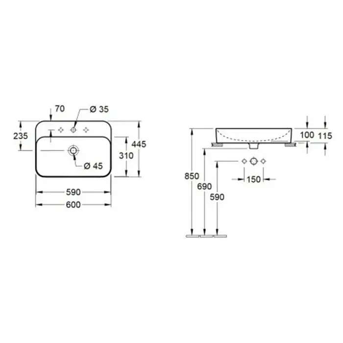 Villeroy & Boch Finion Раковина накладн. прям., 1 отв. под смеситель, 60x47 см, цвет: белый 416864R1