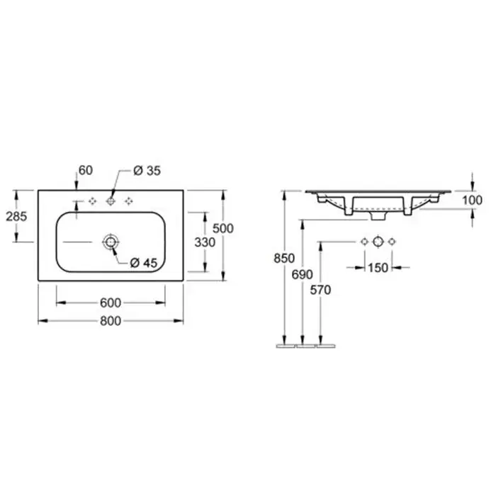Villeroy & Boch Finion Раковина прямоугольная, 1 отв. под смеситель, 80x50 см, цвет: белый 416484R1