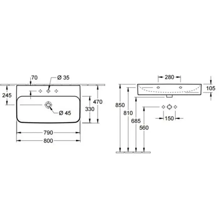 Villeroy & Boch Finion Раковина прямоугольная, 1 отв. под смеситель, 80x47 см, цвет: белый 41688CR1