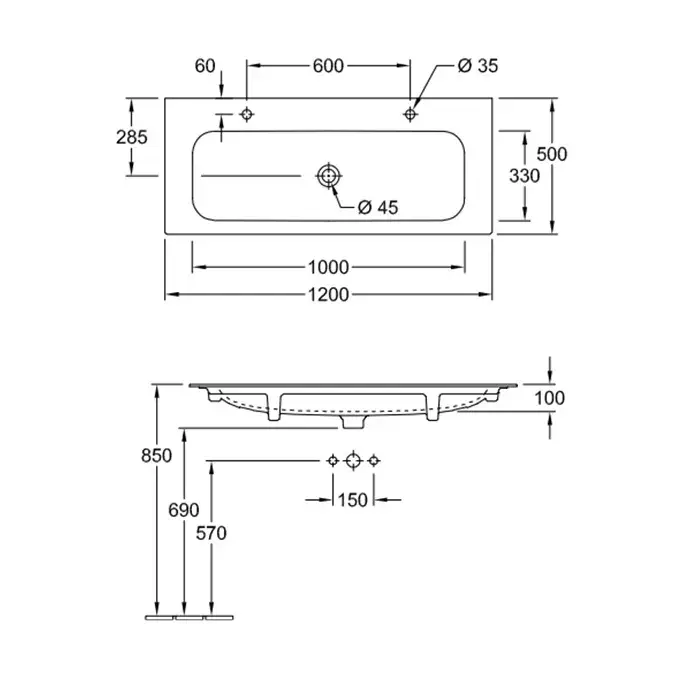 Villeroy & Boch Finion Раковина прямоугольная, 1 отв. под смеситель, 120x50 см, цвет: белый 4164CBR1