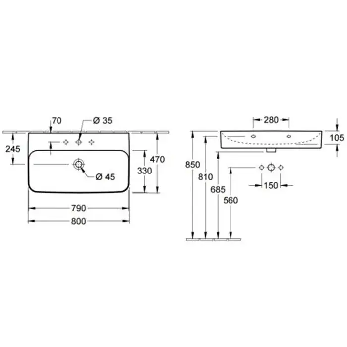 Villeroy & Boch Finion Раковина прямоугольная, 1 отв. под смеситель, 80x47 см, цвет: белый 41688CR1