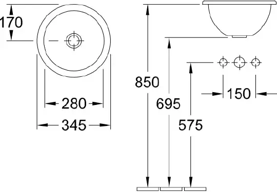 Встраиваемая сверху, Рукомойник