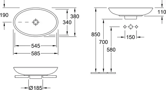 Villeroy & Boch Loop & Friends Раковина 58,5x38x15h см, цвет: alpin 515100R1