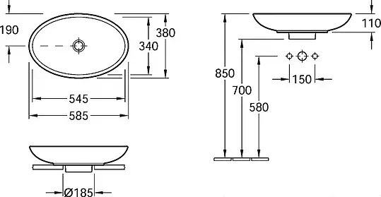 Villeroy & Boch Loop & Friends Раковина накладная 58,5x38x11h, цвет: alpin 51510001