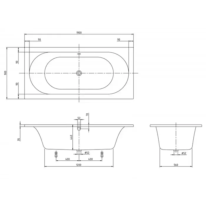 Villeroy & Boch Loop & Friends Ванна 190х90х46,5 см, встраиваемая, цвет: альп. белый UBA199LFO2V01