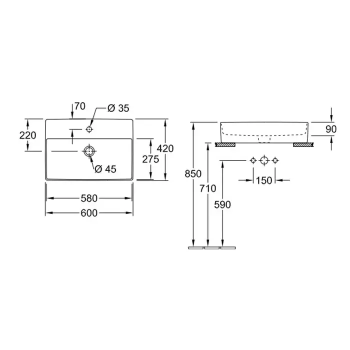 Villeroy & Boch Memento 2.0 Раковина прямоугольная, 1 отверстие, 60x42 см, цвет: белый 4A076001