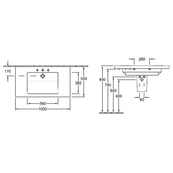 Villeroy & Boch Metric Art Раковина прямоугольная, 1 отверстие, 100х55 см, цвет: белый 519511R1