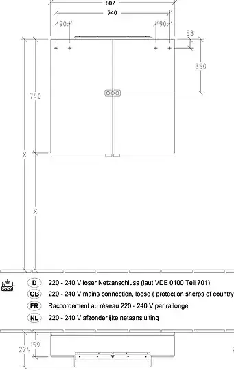 Крепления, Зеркало с подсветкой, Зеркало с розеткой
