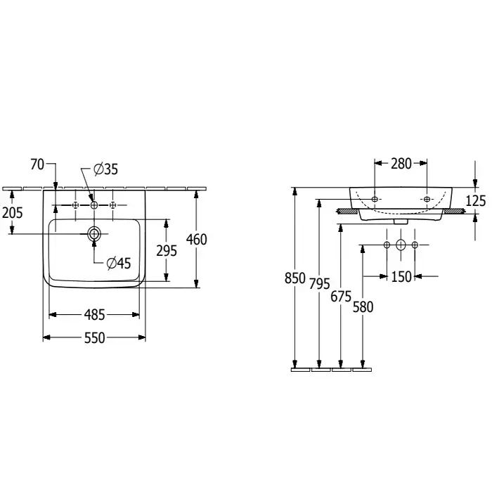 Villeroy & Boch O'Novo Pаковина 55x46x17,5 см, без отв., подвесная, цвет: альпийский белый 4A41MFT2