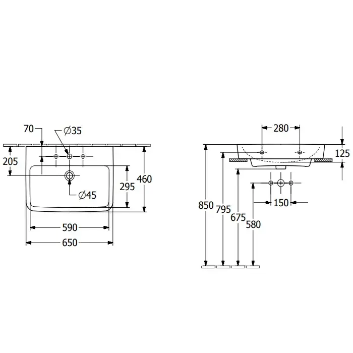 Villeroy & Boch O'Novo Pаковина 65x46x17,5 см, 1 отв., подвесная, цвет: альпийский белый 4A41KLT2