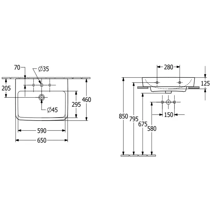 Villeroy & Boch O'Novo Pаковина 65x46x17,5 см, 1 отв., подвесная, цвет: альпийский белый 4A41KLT2