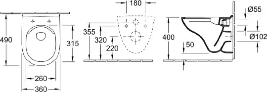Villeroy & Boch O'Novo Унитаз 36х49х35,6 см, подвесной, DirectFlush, цвет: альпийский белый 7667R001