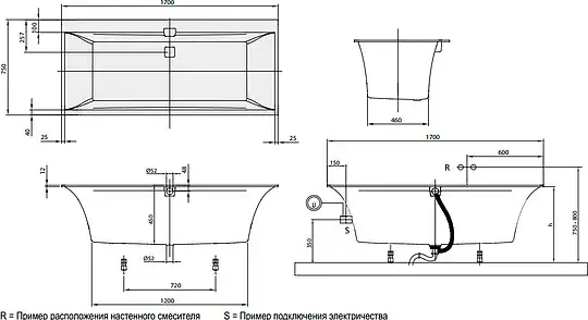 Villeroy & Boch Squaro Edge 12 Ванна из Quaril 170х75 см, цвет Alpin UBQ170SQE2DV-01