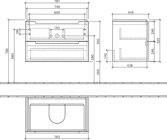 Villeroy & Boch Subway 2.0 Тумба подвесная под раковину, 78,7x59x44,9 см, цвет: белый A91400DH