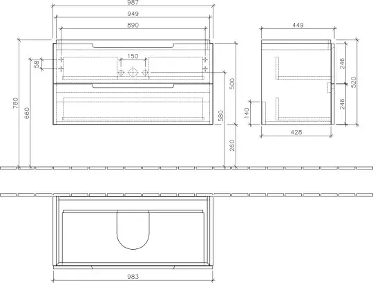Villeroy & Boch Subway 2.0 Тумба 98,7x44,9x52h см, цвет: eiche graphit A69700FQ