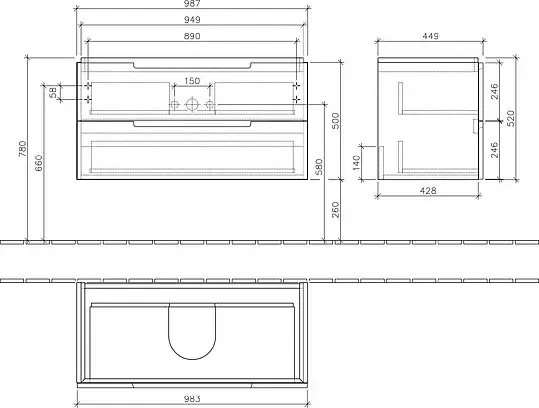 Villeroy & Boch Subway 2.0 Тумба подвесная под раковину, 98,7x59x44,9 см, цвет: белый A91500DH