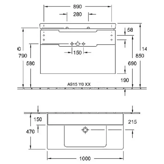 Villeroy & Boch Subway 2.0 Тумба подвесная под раковину, 98,7x59x44,9 см, цвет: белый A91500DH
