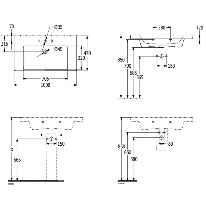 Villeroy & Boch Subway 3.0 Раковина 100х47х16,5 см, 1 отв., подвесная, цвет: белый камень 4A70A5RW
