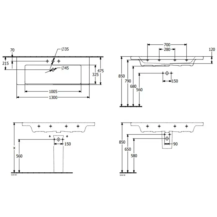 Villeroy & Boch Subway 3.0 Раковина 130х47х17 см, 1 отв., подвесная, цвет: альпийский белый 4A70D5R1