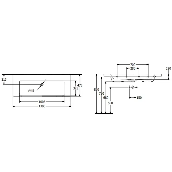 Villeroy & Boch Subway 3.0 Раковина 130х47х17 см, без отв., подвесная, цвет: альп. белый 4A70D301
