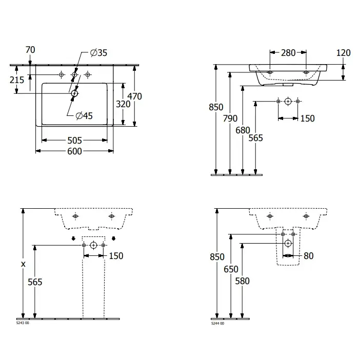 Villeroy & Boch Subway 3.0 Раковина 55х44х16,5 см, без отв., подвесная, цвет: альп. белый 4A70F6R1