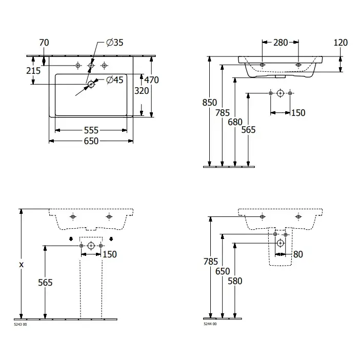 Villeroy & Boch Subway 3.0 Раковина 65х47х16,5 см, 1 отв., подвесная, цвет: альп. белый 4A7065R1