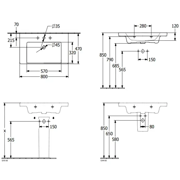 Villeroy & Boch Subway 3.0 Раковина 80х47х16,5 см, 1 отв., подвесная, цвет: альп. белый 4A7081R1