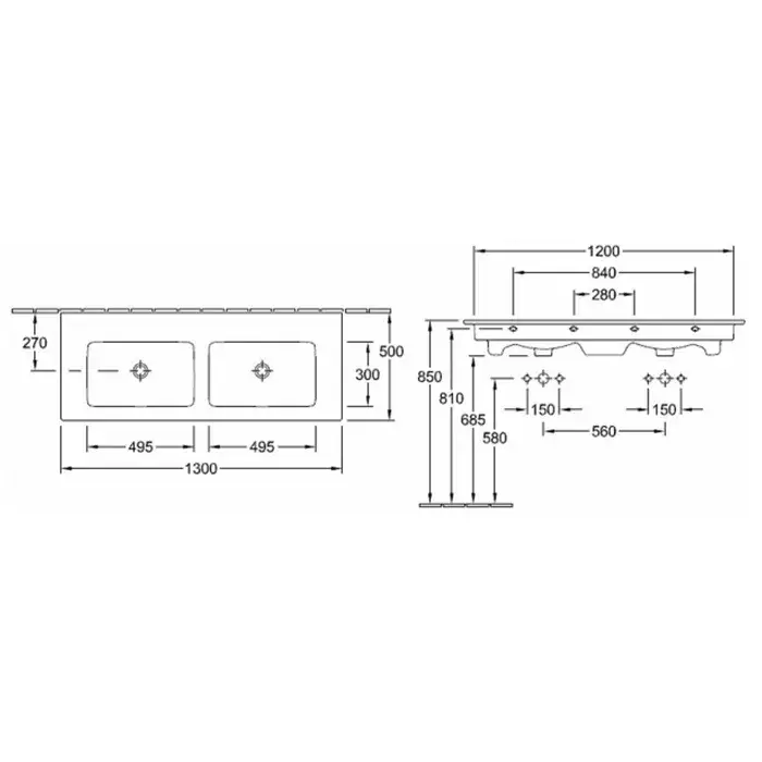 Villeroy & Boch Venticello Раковина, 2 отверстия под смеситель, 130x50 см, цвет: белый 4111DL01