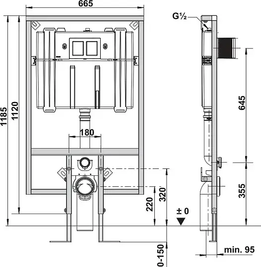 Villeroy & Boch Viclean Система инсталляции для унитазов 66,5x9,5x118,5h см 92247600