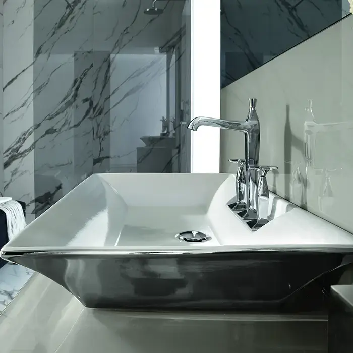 VITAGE milldue edition FOUR SEASONS Ванна 190х100 см, стальная, подача воды из крана, в комплекте с сифоном, основанием и мраморным топом, отдельностоящая, цвет: белый / Calacatta vagli