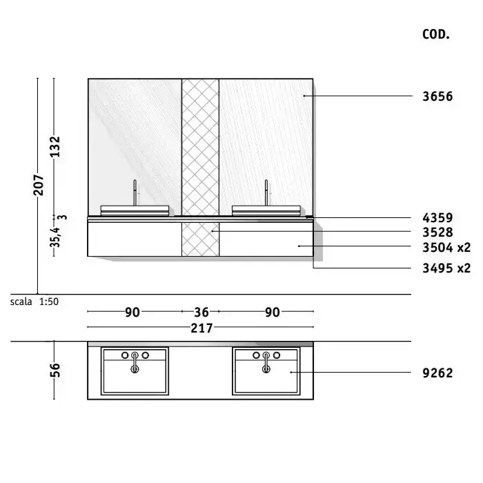 VITAGE milldue edition FOUR SEASONS Тумба подвесная 180х56х35см, с мраморной столешницей, с 2 раковинами, отделка: agata leather