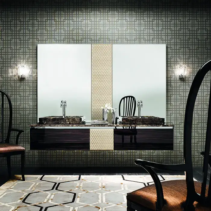 VITAGE milldue edition HILTON Тумба подвесная 180х56х32см, мраморная столешница с 2 раковинами, отделка: стекло twill smoke