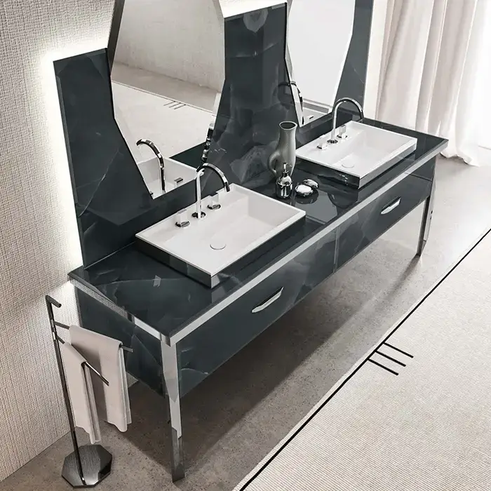 VITAGE milldue edition HILTON 06 Комплект мебели 226х56х77см напольный, 2 раковины, 2 зеркала, с подсветкой, цвет: onice smoke/полированная сталь