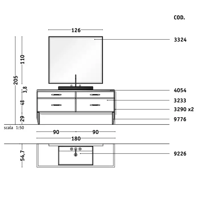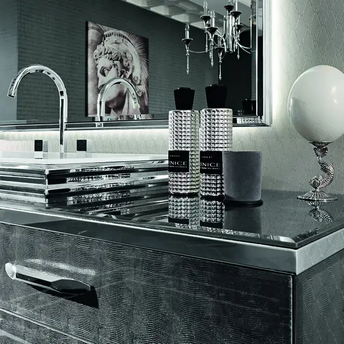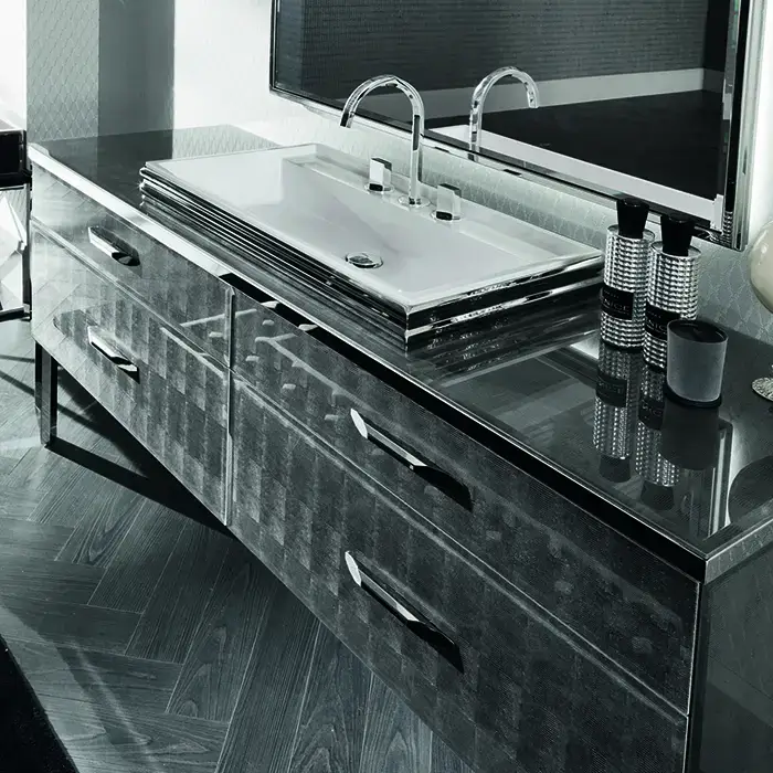 VITAGE milldue edition HILTON 07 Комплект мебели 90х55х31см подвесной, 2 раковины, зеркало, с подсветкой, отделка: стекло riso acidato, фурнитура: бронза