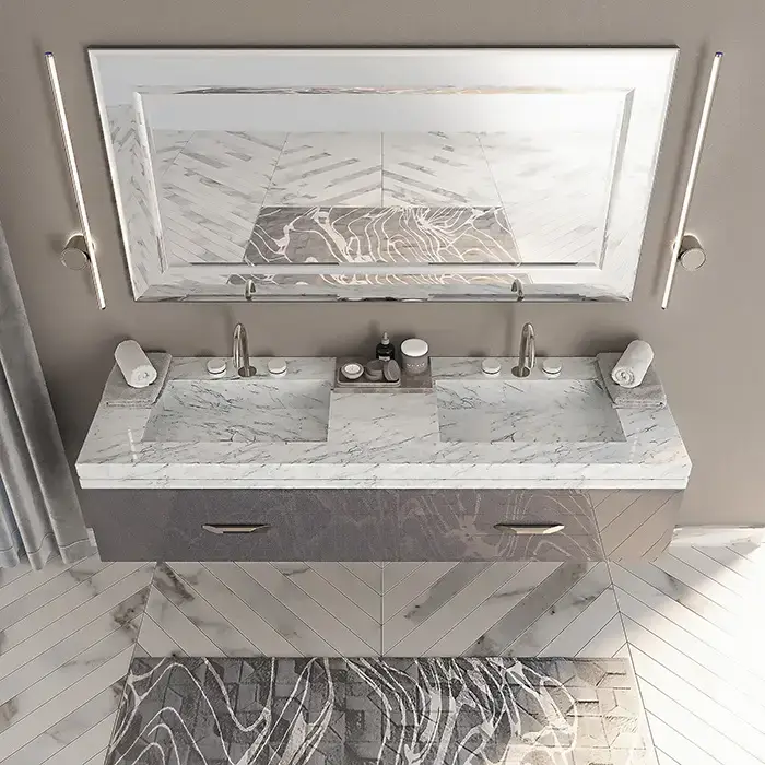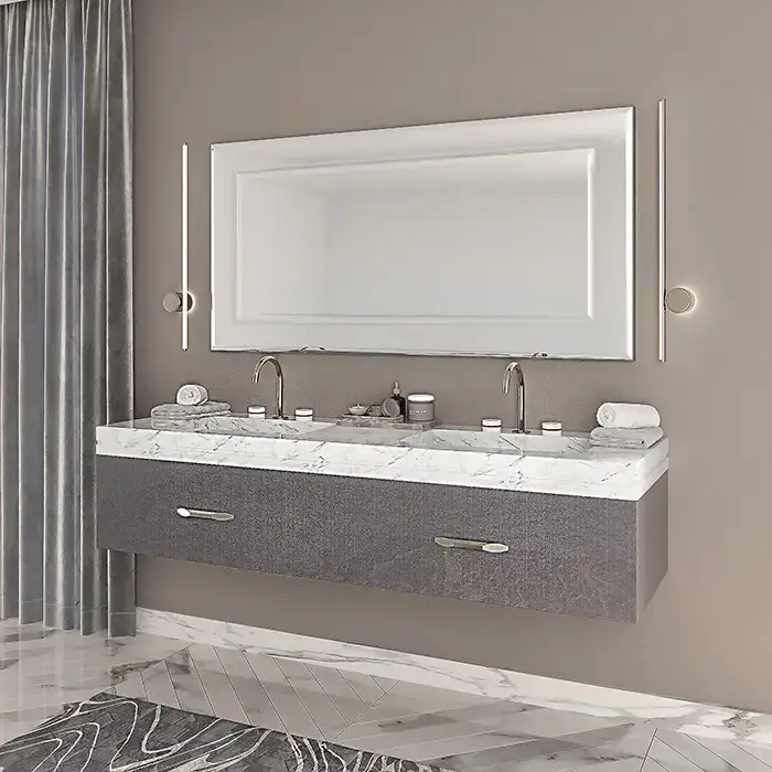 VITAGE milldue edition FOUR SEASONS Тумба подвесная 180х56х35см, с мраморной столешницей, с 2 раковинами, отделка: agata leather