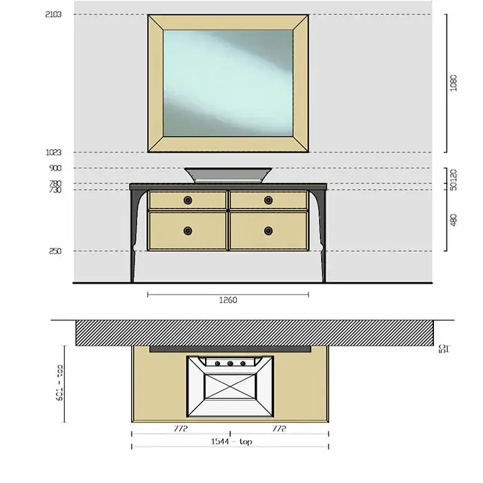 VITAGE milldue edition MAJESTIC 07 Комплект мебели 154х60хh78см., напольная, раковина, зеркало, отделка: стекло Bronzo acidato/black crom