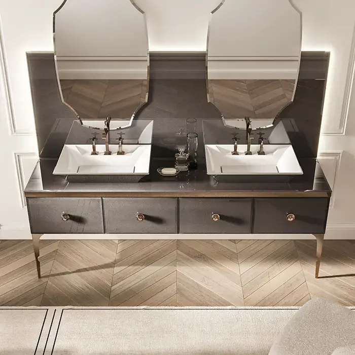 VITAGE milldue edition MAJESTIC 09 Комплект мебели 216х55х73см напольный, 2 раковины, 2 зеркала, с подсветкой, отделка: стекло elephant bronze, фурнитура: бронза