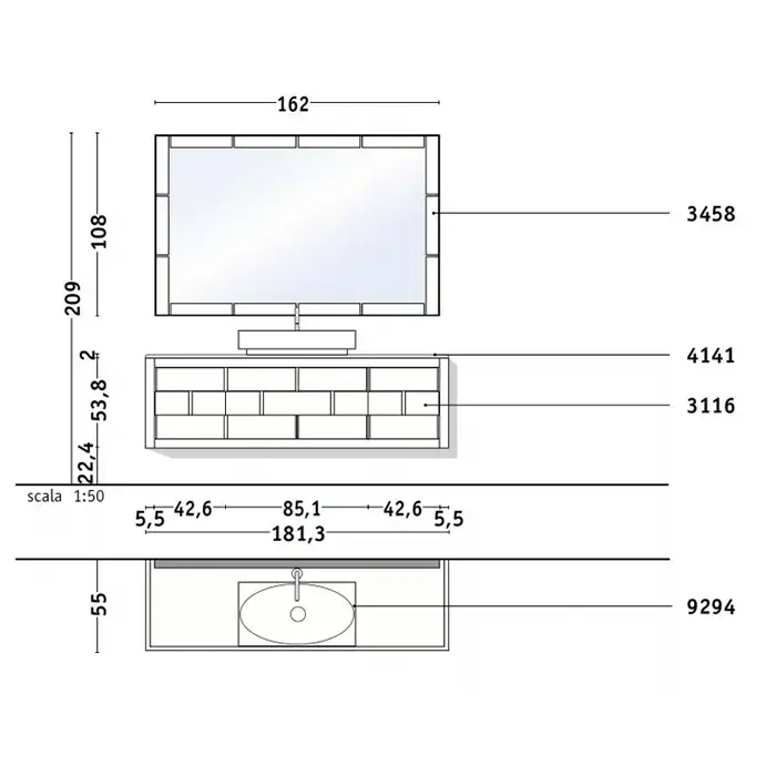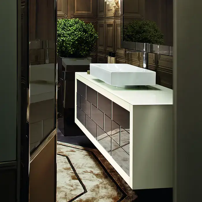 VITAGE milldue edition RITZ Комплект мебели с базой, раковиной PARIGI, зеркалом BERLINO, 181см, подвесной, Цвет: стекло cannete-75/бл. лак riso-09