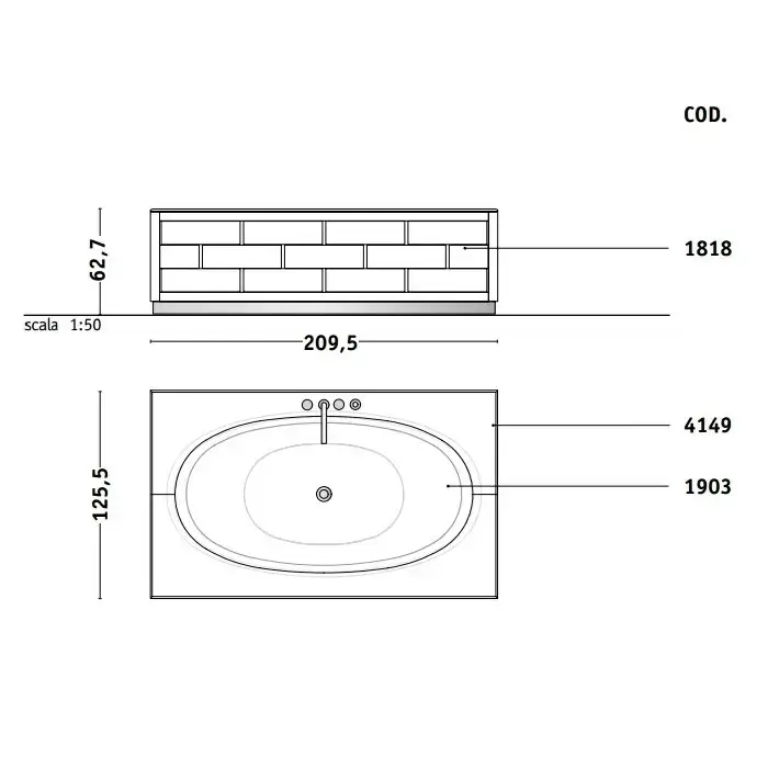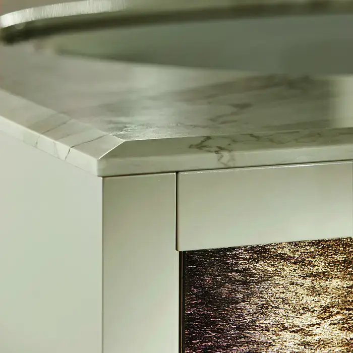 VITAGE milldue edition RITZ Ванна 190х100 см, стальная, подача воды из водослива, в комплекте с сифоном, основанием и мраморным топом, отдельностоящая, цвет: белый/Golden crash