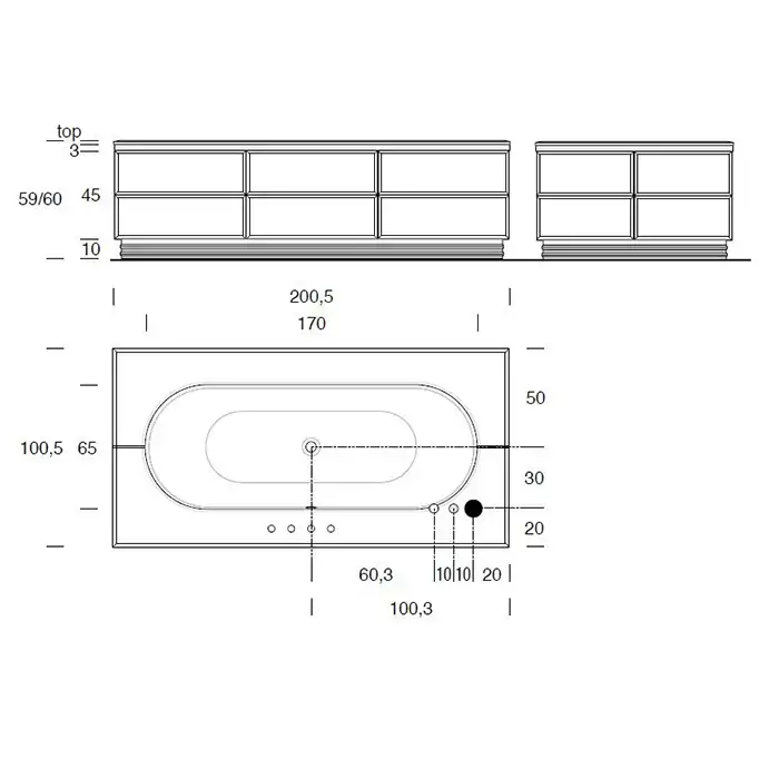 VITAGE milldue edition Ванна отдельностоящая 200х100см, стальная, с сифоном, топ стекло nero, цвет: белый / глянцевый шпон Ebano